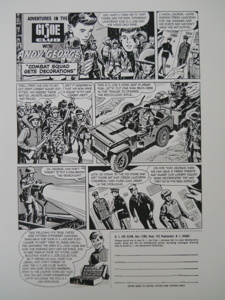 In the September 1966 issues of D.C. comics, a GI Joe "Andy and George" ad appears under the title of "Combat Squad Gets Decorations." The photo below depicts this ad.